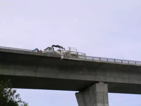 Sciage de caniveaux le long d'un viaduc.
